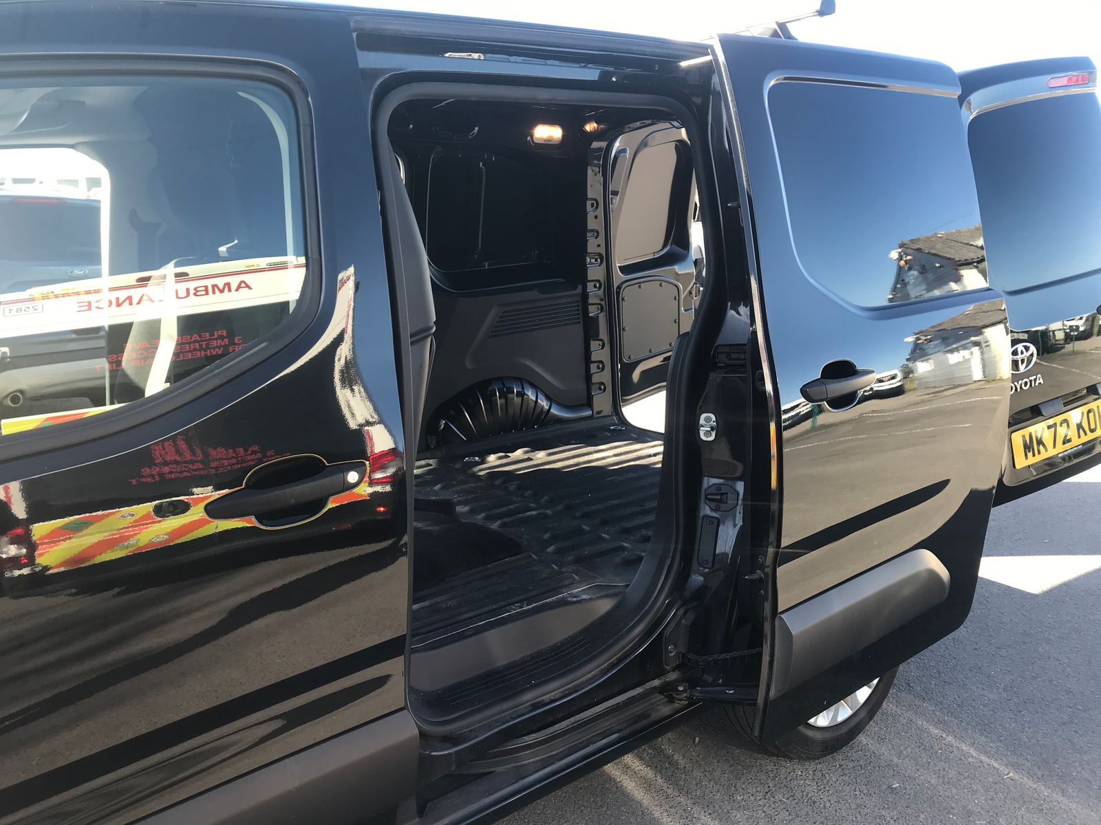 "BLACK OPAL GENUINE 28271 MILES 2022 72 PLATE EURO 6" TOYOTA PROACE CITY ICON 1.5 3 SEATER 6 SPEED 6 DOOR PANEL VAN, IN METALLIC BLACK OPAL WITH CONTRASTING CHARCOAL GREY CLOTH INTERIOR, GENUINE 28271 MILES ONE OWNER FROM NEW, FULL SERVICE HISTORY - 17429 MILES/28271 MILES ...EXTRAS INCLUDE... 2 Keys, Air Conditioning, Cruise Control, 8in Colour Touchscreen, Bluetooth Hands Free System, Colour Reversing Camera, Front Power Windows -Anti-Jam Protection On Power Windows, Heated And Power Folding Adjustable Door Mirrors, Automatic Daytime Running Lights, Headlights, 3-Spoke Urethane Multifunction Steering Wheel, Monochrome Multi-Information Display, eCall Emergency Call System, Glovebox With Cooler, Full Panel Bulkhead, Front Ribber Floor Covering, Twin Side Loading Sliding Doors With Contrasting Solid Asymmetric Rear Doors With 180 Degree Opening All Designed For Safe Easy Loading, Rear Hard Plastic Floor Protection In Load Area With 6 Floor Mounted Load Securing Rings, Brake Assist, Downhill Assist Control, Electronic Stability Control, Anti Lock Braking System - ABS With Electronic Brake-Force Distribution, Vehicle Stability Control, Hill Start Assist Control, Supplemental Restraint System SRS Airbags System, Combined Alarm Remote Central Door Locking, Gear Shift Indicator, Factory Fitted Privacy Glass 30 Percent Smoke Tint, Pollen Air Filter, Electric Parking Brake, Tyre Pressure Warning System, Power Steering, Side Protection Moulding Without Paint, Adjustable Head Rests, Black Door Mirrors and Handles, Black Front and Rear Bumpers, Black Upper Front Grille, Cargo Area Illumination, Closed Upper Passenger Dashboard Storage Compartment, Driver And Front Passenger Personal Lights, Front Bottle Holders, Open Lower Glovebox - Passenger Side, Open Upper Driver Dashboard Storage Compartment, Overhead Storage Driver And Passenger, Full Size Spare Wheel, 15in Steel Wheels With Full Trims, USB Connector, MyT Connected Services, Quadrophonic Sound Surround With 8in Colour Touchscreen DAB Digital Radio/ Media Entertainment Stereo System With Speakers x4, " A Perfect Addition To Anybody's Growing Business" One Owner From New Genuine 28271 Miles In Black Opal A Truly Superb All Round Vehicle A Real Pleasure To Drive Stunning Colour Combination Countless Extras " Don't Miss Out On This Fantastic Opportunity " PX WELCOME....COMES WITH A FULL 12 MONTHS MOT PLUS A OIL AND FILTER SERVICE PLUS YOU GET OUR WARRANTY PLUS A 12 MONTHS AA BREAKDOWN COVER ALL WITHIN THE PRICE..Email For Further Details....POSSIBLE DELIVERY THROUGHOUT THE UK (Subject to T&C) PLEASE ASK FOR DETAILS